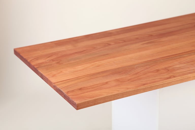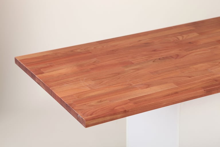 Vyšnios medienos tvirtumo savybės yra panašios kaip ąžuolo. Ištisiniai vyšnios medienos skydai klijuojami iš vientisų lamelių. Lamelių ilgis nuo 900mm iki 3000mm. Visos lamelės rūšiuojamos pagal kokybę. Individualus lamelių parinkimas prieš klijavimą garantuoja harmoningą ir estetišką vaizdą. Po klijavimo plokštė šlifuojama popieriumi, kurio galutinė gradacija yra 100-120.
